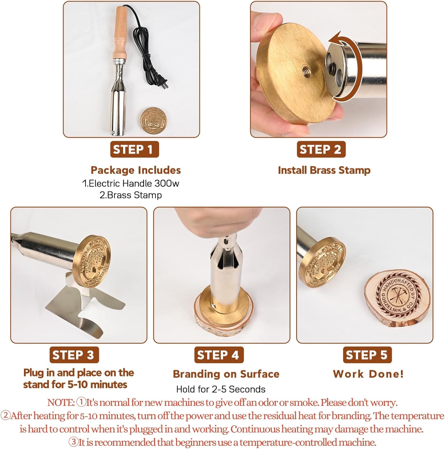- Ease of Use: Simply install the brass stamp, plug it in, and place it on the stand for approximately 8-10 minutes. Brand the surface by holding for 2-5 seconds, and the work is done
