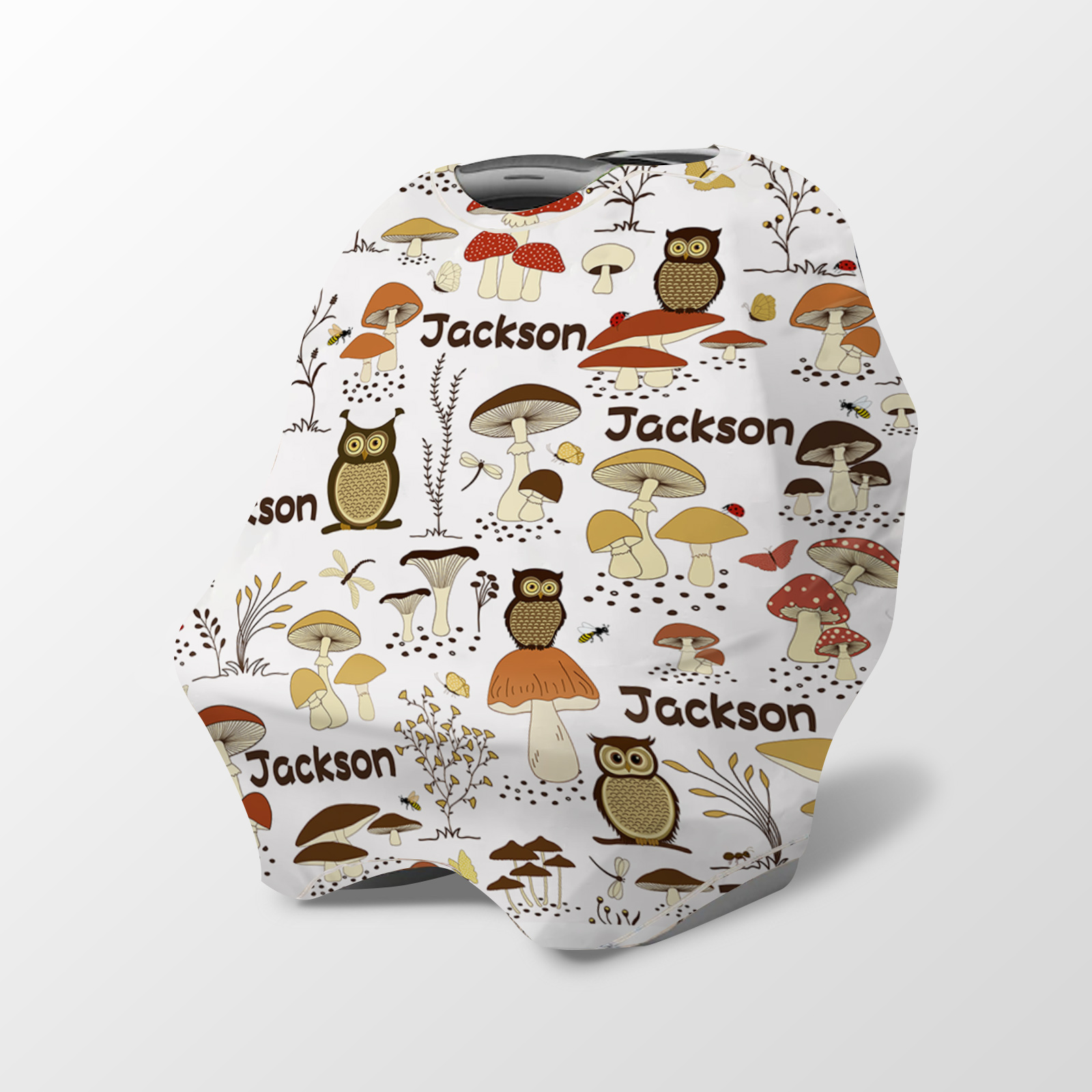 Personalized Mushroom Owl Baby Car Seat Cover Gift for Baby Girl Boy