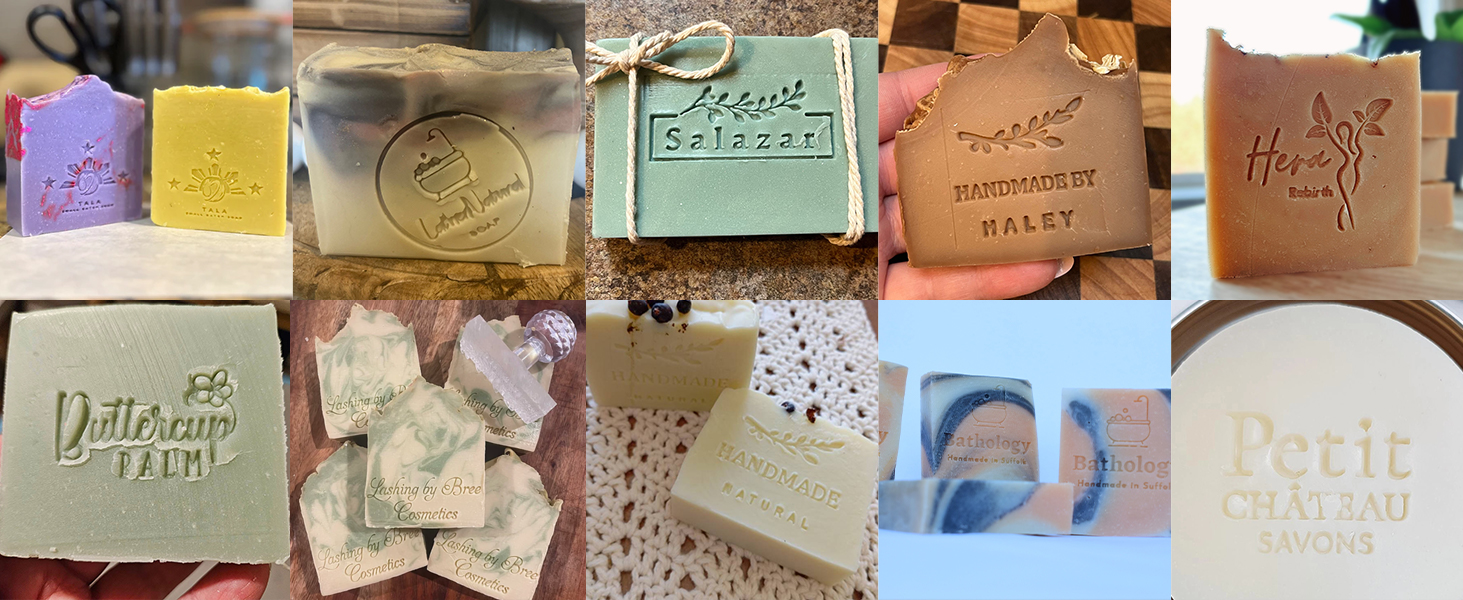 Our custom soap stamps are laser engraved on high-quality acrylic, ensuring durability and a clean, precise imprint on soft soap bars, pottery, or candles.