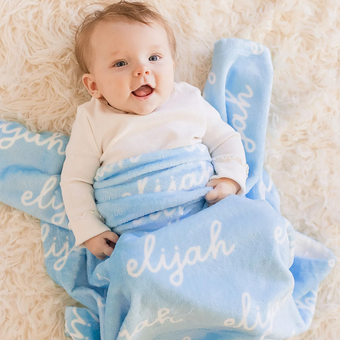 Enter the name you want to be printed on the blanket. What else would make a more unique baby shower gift for newborns, babies, toddlers, kids and parents-to-be?