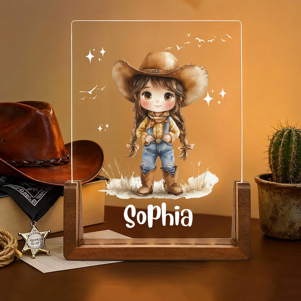 • Personalized with your child's name and adorable cowgirl illustration, creating a unique keepsake night light