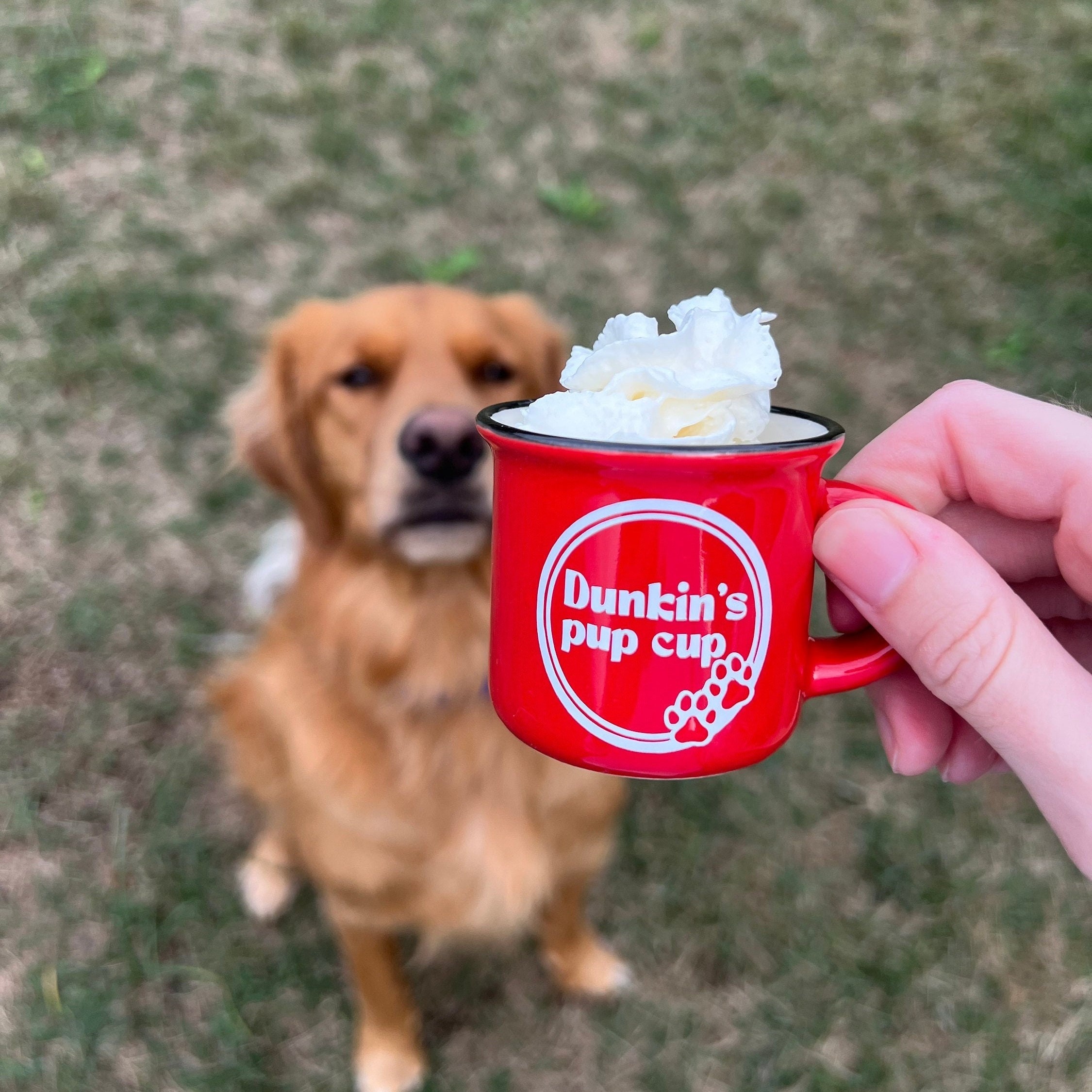 This is a ceramic 2.4oz / 5oz mug for your dog's puppuccinos!We offer different sizes of cups to match the needs of small and large dogs.
