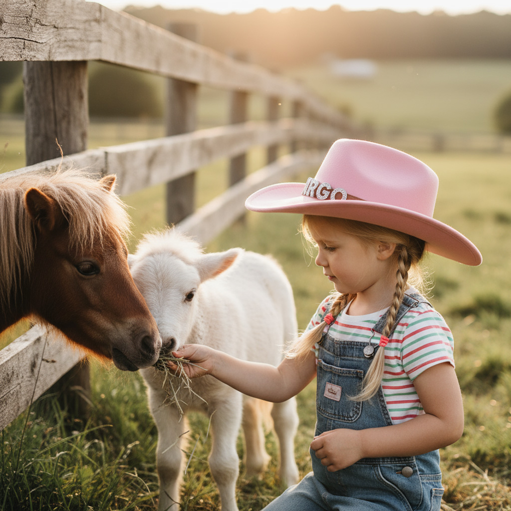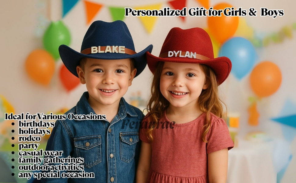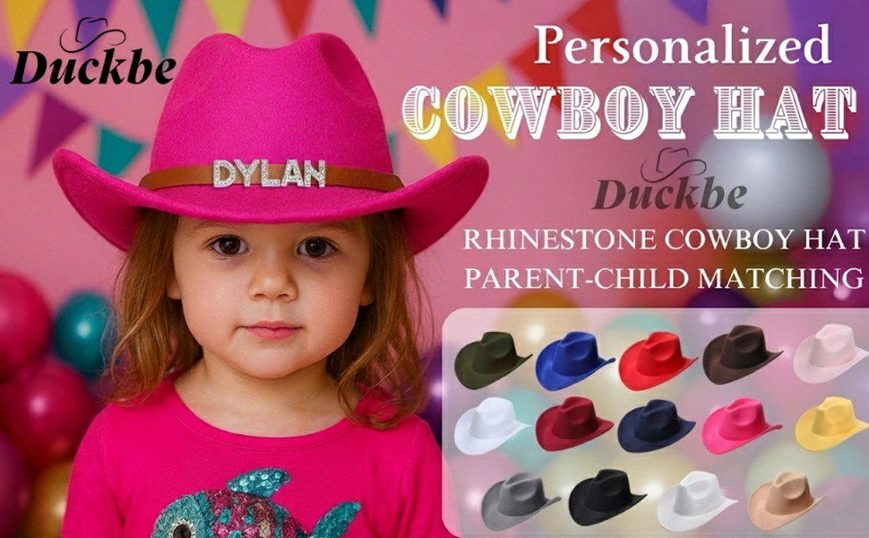 Shine bright with our Custom Toddler Cowboy Hat with Rhinestones. Designed for kids and adults, this personalized western hat features sparkling rhinestones arranged in names or text for a unique statement piece. Perfect for rodeos, bachelorette parties, weddings, birthdays, festivals, and everyday western fashion.